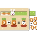 Aprenda a contar de forma divertida! Movimente o coelhinho, somando ou subtraindo as cenourinhas para encontrar o resultado final.