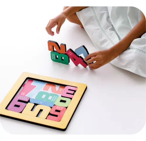 Contém: 1 base e 10 números de espessura grossa em madeira.
