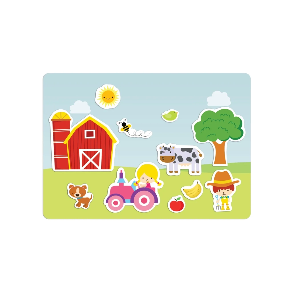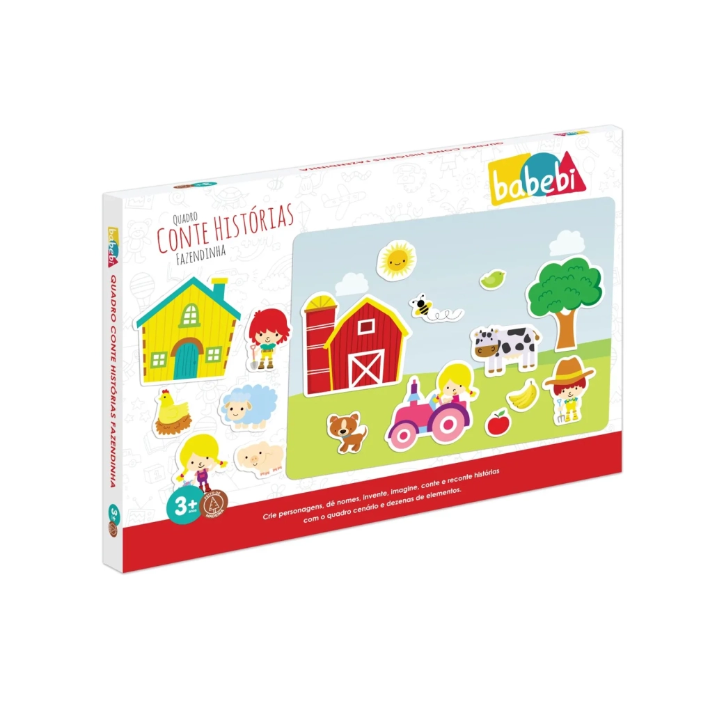 Com o Quadro Conte Histórias Fazendinha crie personagens, dê nomes, invente, imagine, conte e reconte histórias com este quadro em formato de cenário e dezenas de elementos com o tema fazendinha.