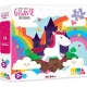 Contém 21 peças, forma um quebra-cabeça de 52 cm x 40 cm.