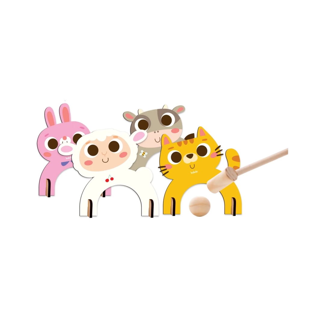 Este jogo "Toque Emboque" apresenta arcos em formato de bichinhos, tacos e bolinhas de madeira. Junte seus amiguinhos e desafie a concentração e coordenação motora de forma lúdica e divertida com nossos adoráveis bichinhos.